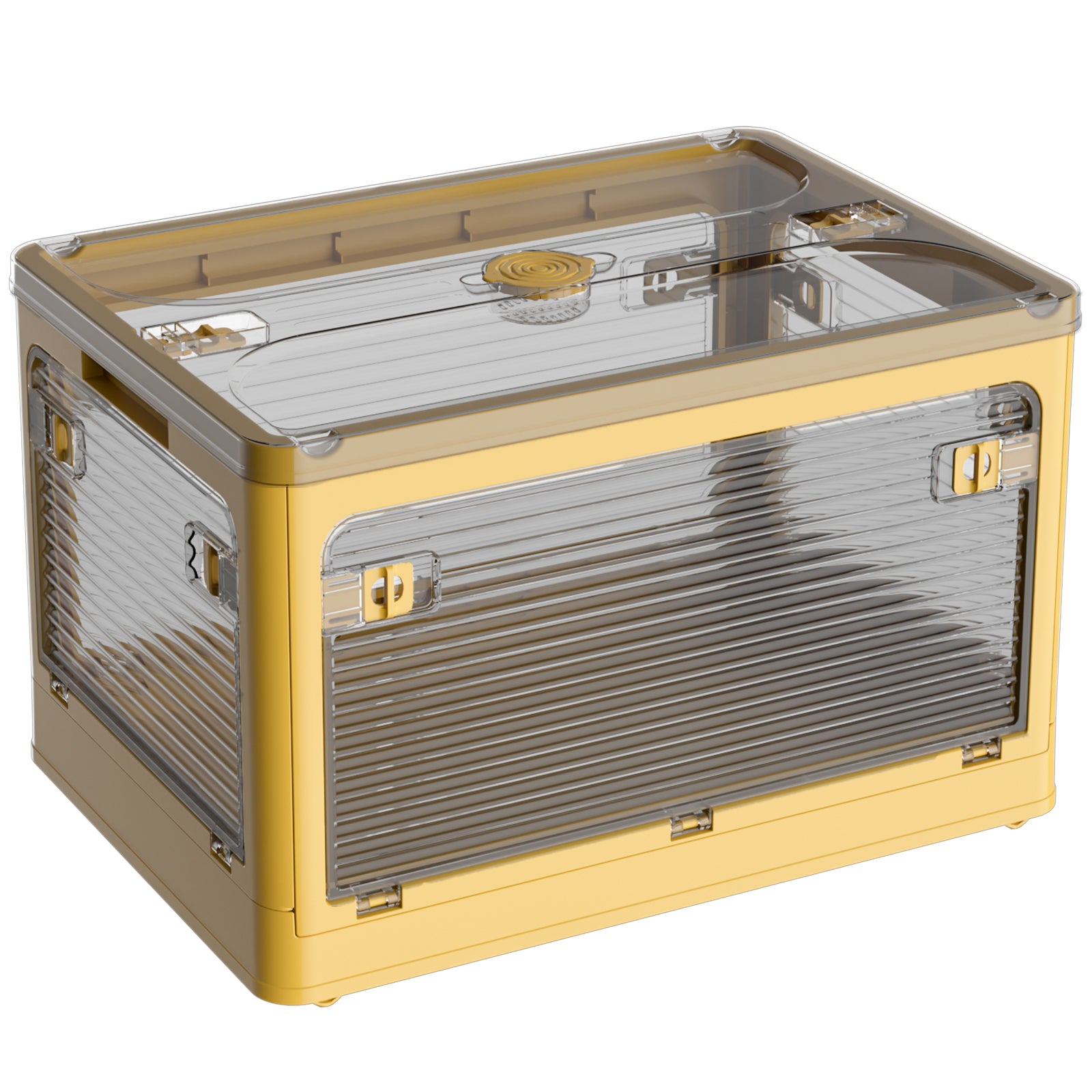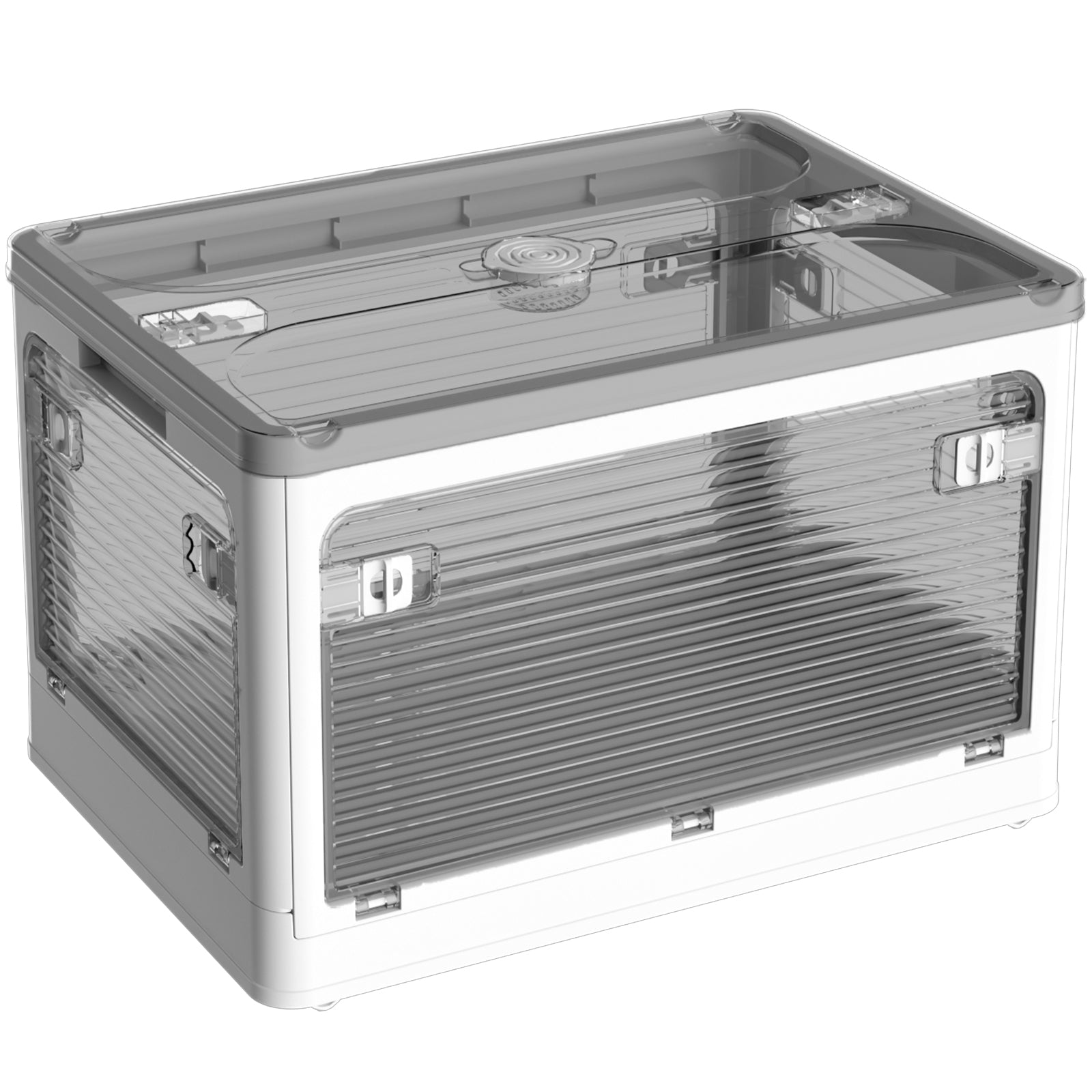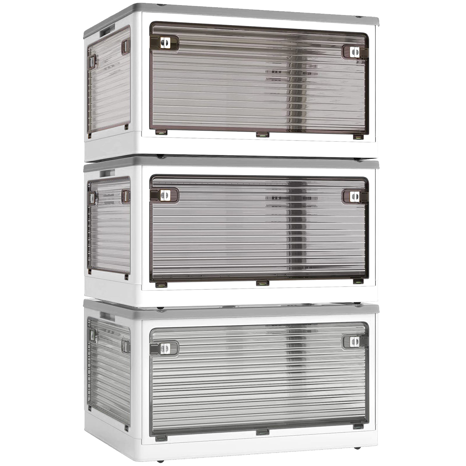 - 【折り畳み▪上に蓋/側面扉付き】収納箱界の大革新!使わない時に折りたたんで収納できます。スペースを取りません。側面四面も扉付き、収納にとても便利です。上にふた付き、物を入れやすい。蓋をロックできます。物を取るは側面扉から、ボックスを積み重ねる状態にも楽に物を取り出して、伝統的な収納ボックスに比べてもっと便利で、機能性が向上します。